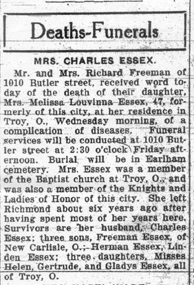 - Melissa's Obituary - 1916